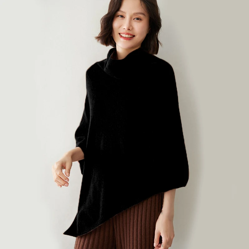 This Poncho Cashmere is expertly knitted from 100% pure Mongolian cashmere yarn, creating a delicate, featherlight fabric that maintains exceptional warmth. Measuring approximately 60 cm by 80 cm, it offers a generous yet neat silhouette that flatters every figure. The deep midnight black shade is achieved without harsh dyes and is engineered to stay true through repeated wear and washes. Certified free from harmful chemicals, this piece delivers a naturally breathable layer that stays gentle on sensitive skin.