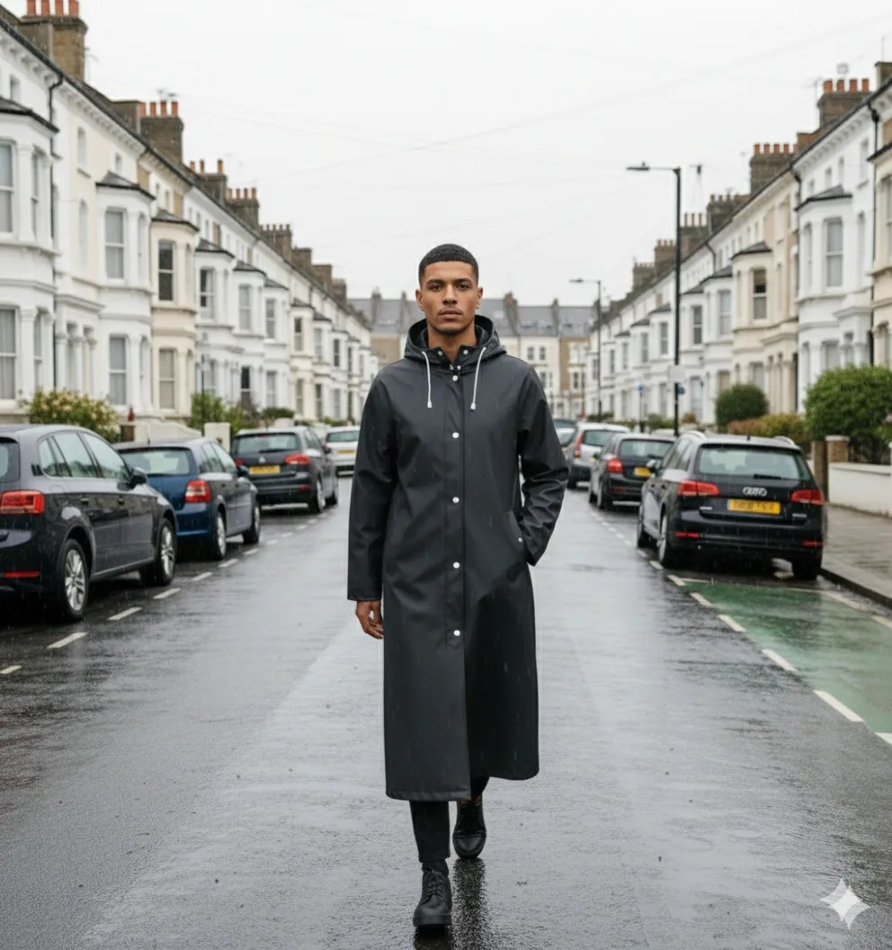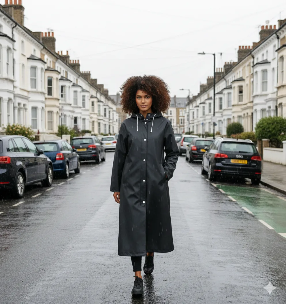 🧥 Long cut for extra coverage on wet days