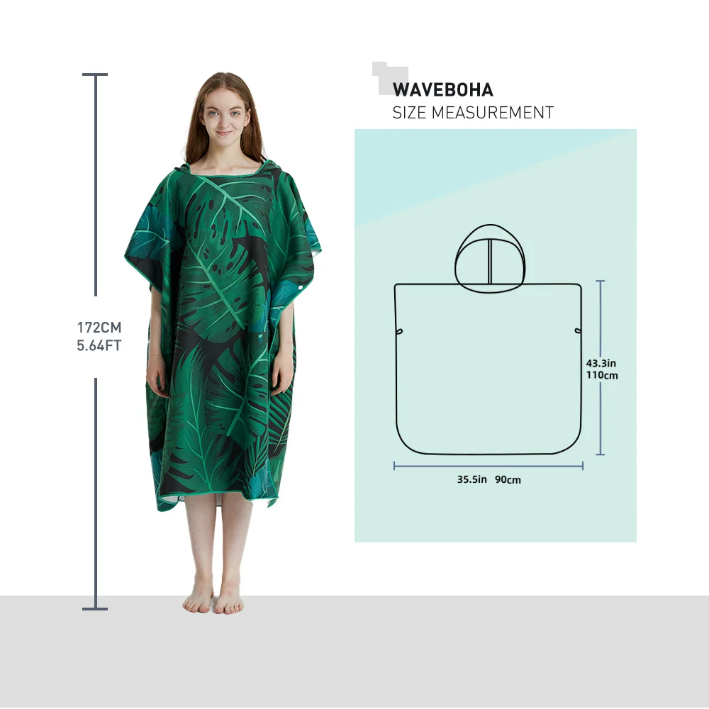 Crafted from ultra‐soft microfibre, this poncho towel is both lightweight and highly absorbent. The advanced dyeing process ensures the lush green foliage motif remains vivid wash after wash. At 90 cm wide with a 110 cm drop from shoulder to hem, it offers generous coverage without hindering movement. Its fabric gently pampers sun‐kissed skin and dries rapidly, so you can pack it away and carry on with your day.