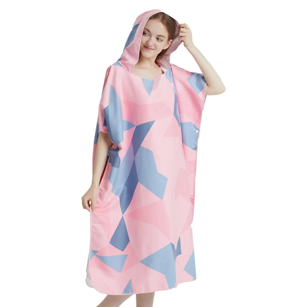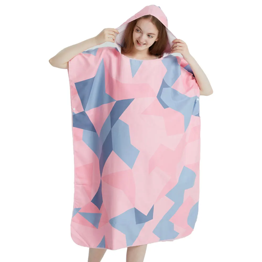 Crafted from high-quality microfiber fabric, this poncho towel offers exceptional absorbency and fast drying time. The advanced dyeing process ensures the vibrant pink geometric pattern remains crisp and colourfast wash after wash. The fabric is ultra-soft against skin, so you’ll appreciate the gentle touch as you dry off or change in complete privacy.