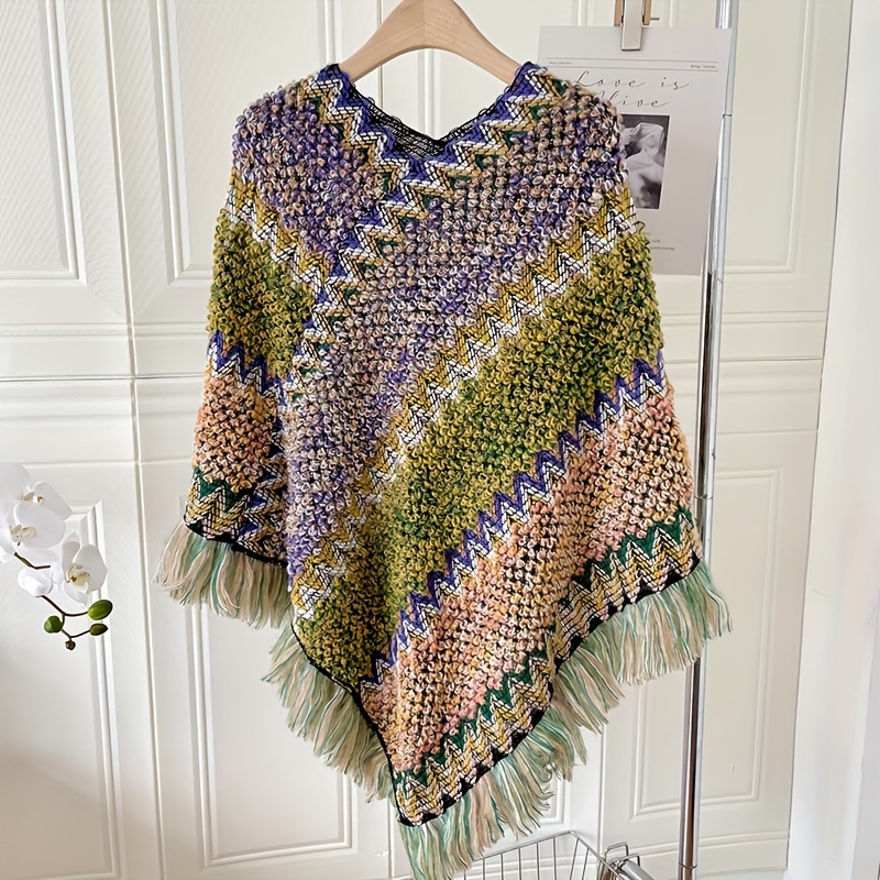 The Poncho Women « Boho Knit Light Violet » blends delicate colour with cosy winter comfort.